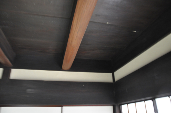 ところが山陰地方で大和天井と呼ばれるているものは全く違います。一般的な天井の上、つまり天井裏に設けられ、梁上に竹や細い板を渡してその上に筵を敷き、壁土と同じものを厚く塗りつけた土塗り天井(?)を大和天井と呼んでいます。おそらく藁葺き屋根の時代の防火対策でしょうが、なぜこれを大和天井と呼ぶのかは不明です。屋根を瓦に葺き替えていても天井裏に大和天井が残されている古民家は結構ありそうですが、解体・改修工事でもなければ目にする機会はありません。土塗りの天井と一般的な大和天井(ささら天井)の両方がある古民家の当主に話を伺ったこともありますが、土塗りの天井を大和天井と呼ぶことは常識として御存知でしたが、一般的な大和天井については呼称そのものを聞いたことがないようでした。