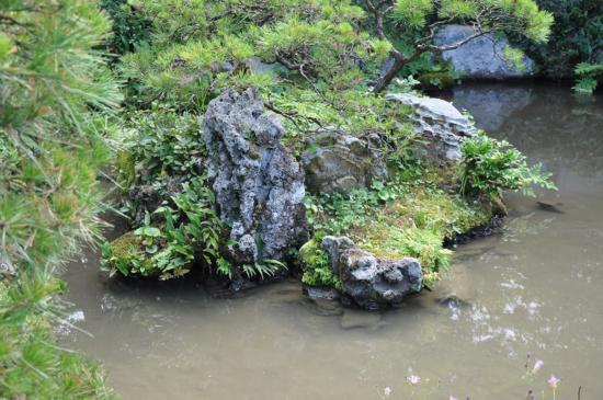 庭園に再現される自然景観のモデルはいわゆる名勝地ですが、平安貴族にとっての名勝地とは別名・歌枕の地ということなのでしょう。写真は以前紹介した深田氏庭園の鶴島(別アングル)です。