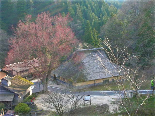 写真は島根県雲南市にある“菅谷たたら山内”のカツラで、15年近く前のものです。大きく写っている屋根は、映画「もののけ姫」に登場した“たたら場”のモデルと言われていた建物。この日は曇り空でしたが、雲の切れ間から日が差すと刻一刻と色を変えていき、夕日に染まる瞬間が最も赤みを増します。花の見頃はせいぜい数日間、ソメイヨシノの開花より10日程前あたりでしょうか。